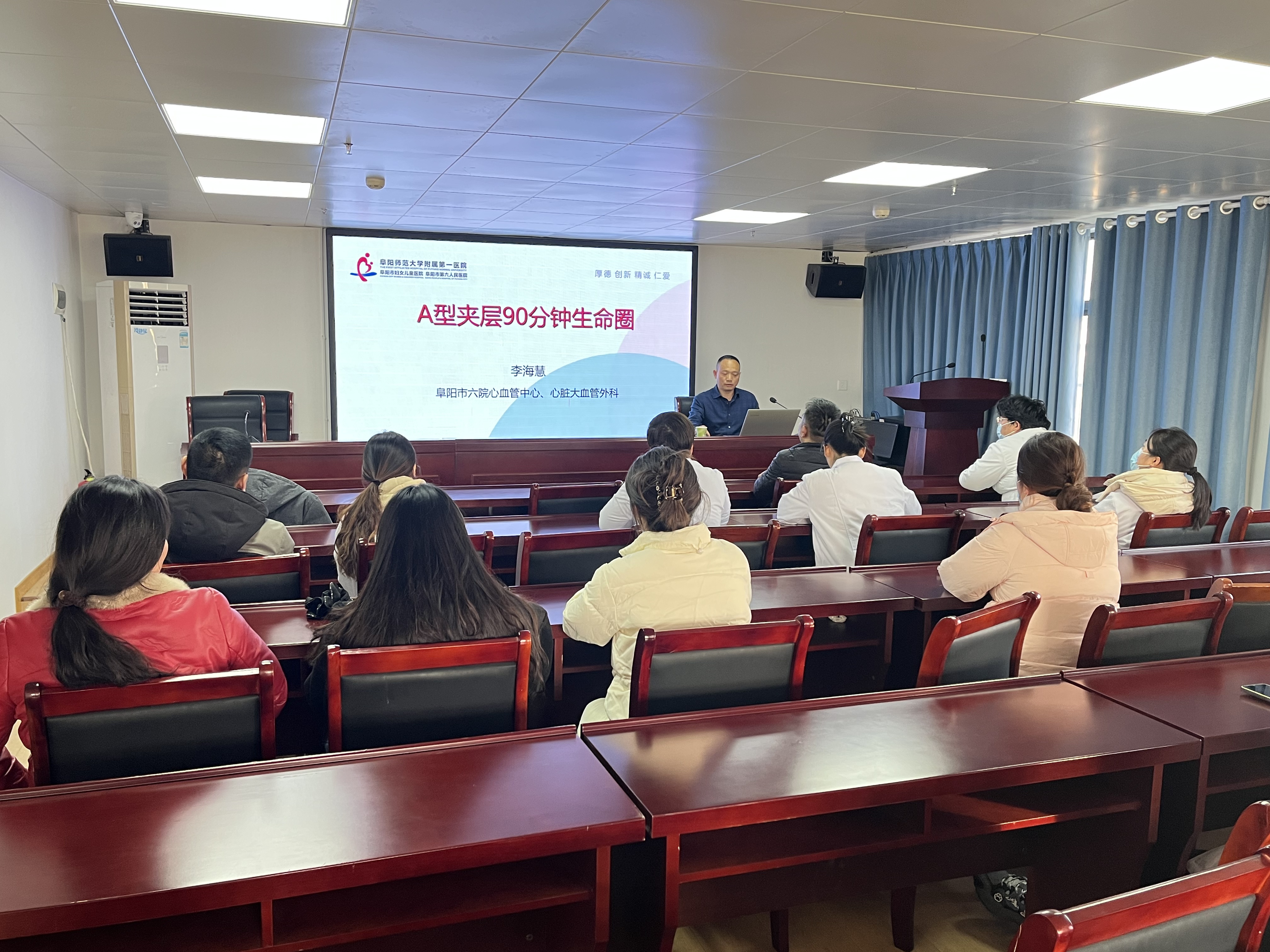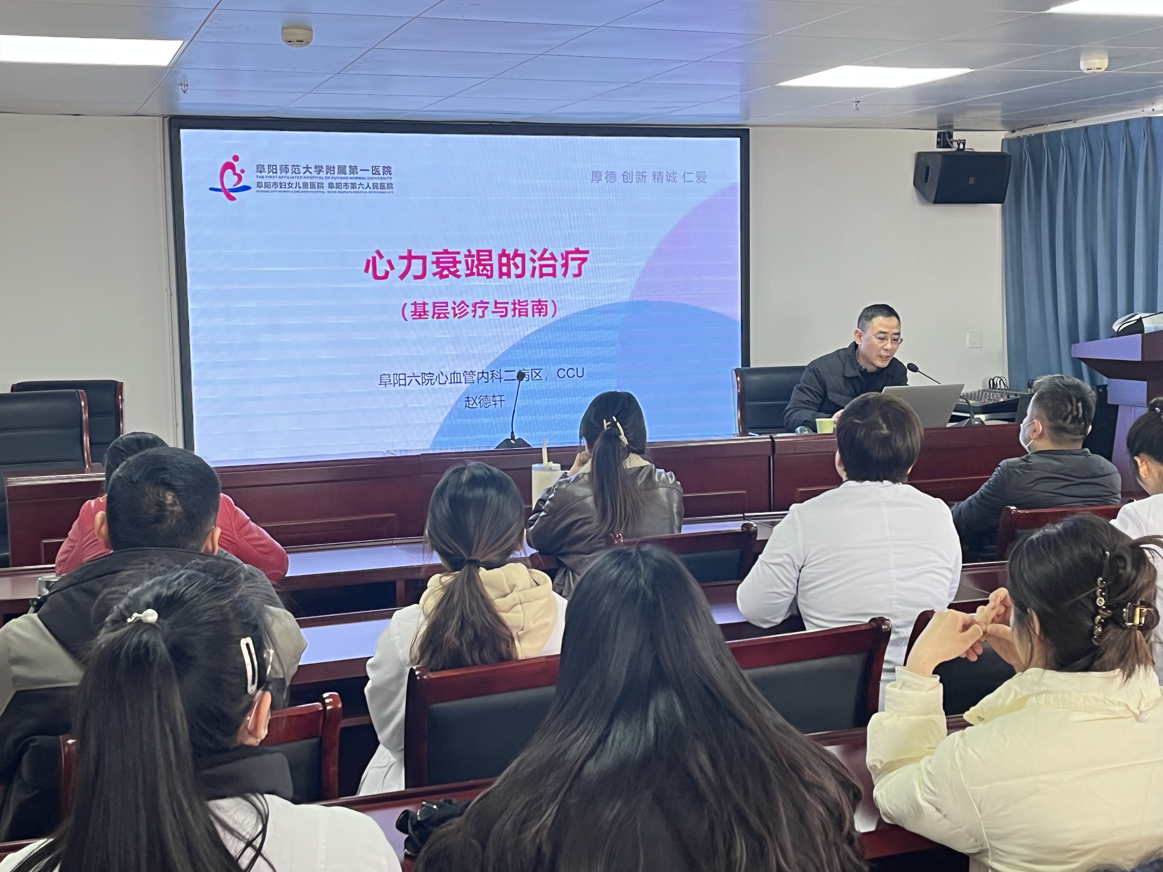 会议由全科医学科主任李春喜主持,鼓楼分院副院长陈明海致欢迎辞。本次会议特别邀请了阜阳市第六人民医院心血管内科、CCU赵德轩主任,心血管中心主任、心脏大血管外科李海慧主任,内分泌科邓涛主任,全科李春喜主任进行授课交流。参会人员还有鼓楼分院的临床医生以及所辖村室的全科医生。