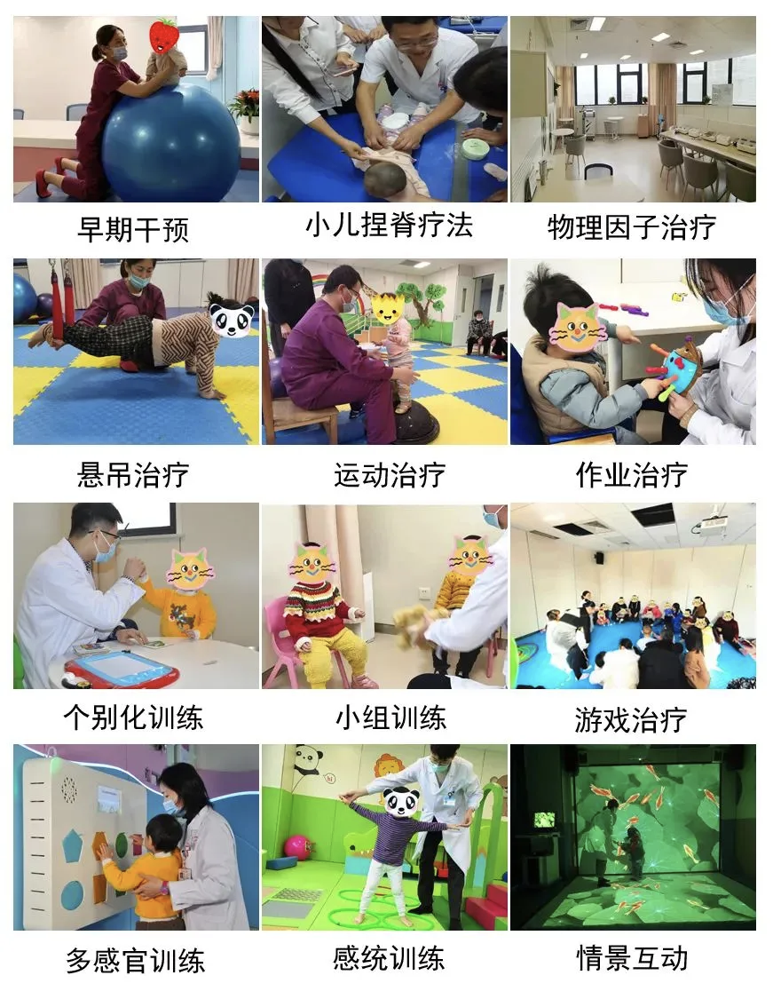 脑性瘫患及周围神经肌肉疾病;高危儿随访及早期干预;发育指标延迟(运动、语言、认知)、孤独症谱系障碍、注意缺陷多动、抽动症等神经发育障碍性疾病;儿童脊柱侧弯、小儿肌性斜颈、罕见病(SMA)等儿童遗传代谢相关疾病的中西医结合康复治疗。