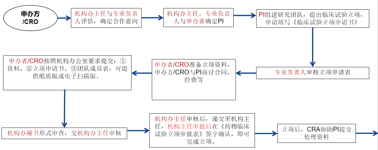为提高工作效率,保证药物临床试验质量,本机构办公室规定如下,请各申办方、CRO、各单位CRA、CRC及研究者配合我们的工作,将按以下流程执行。